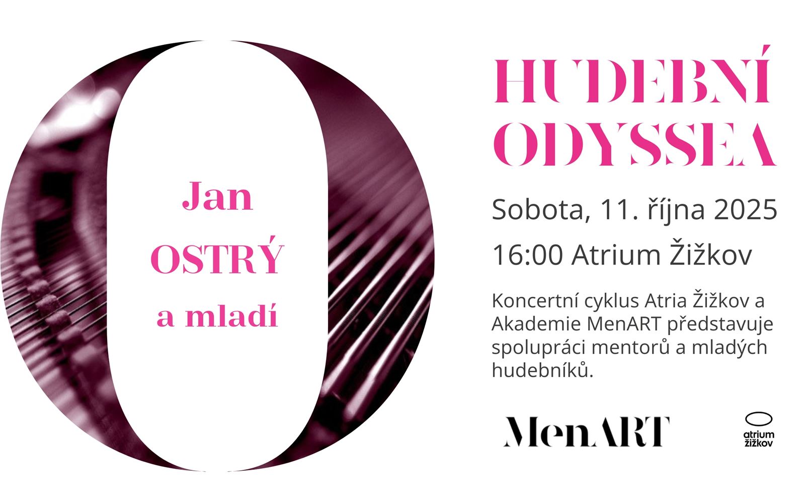 Koncertní cyklus Atria Žižkov & Akademie MenART se v sobotu 11. října 2025 od 16 h představí spoluprací mladých hudebníků a jejich mentora Jana Ostrého.