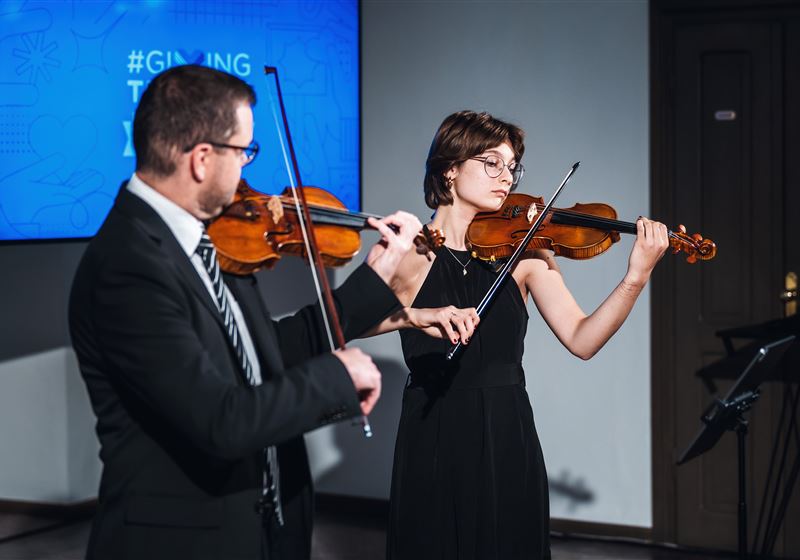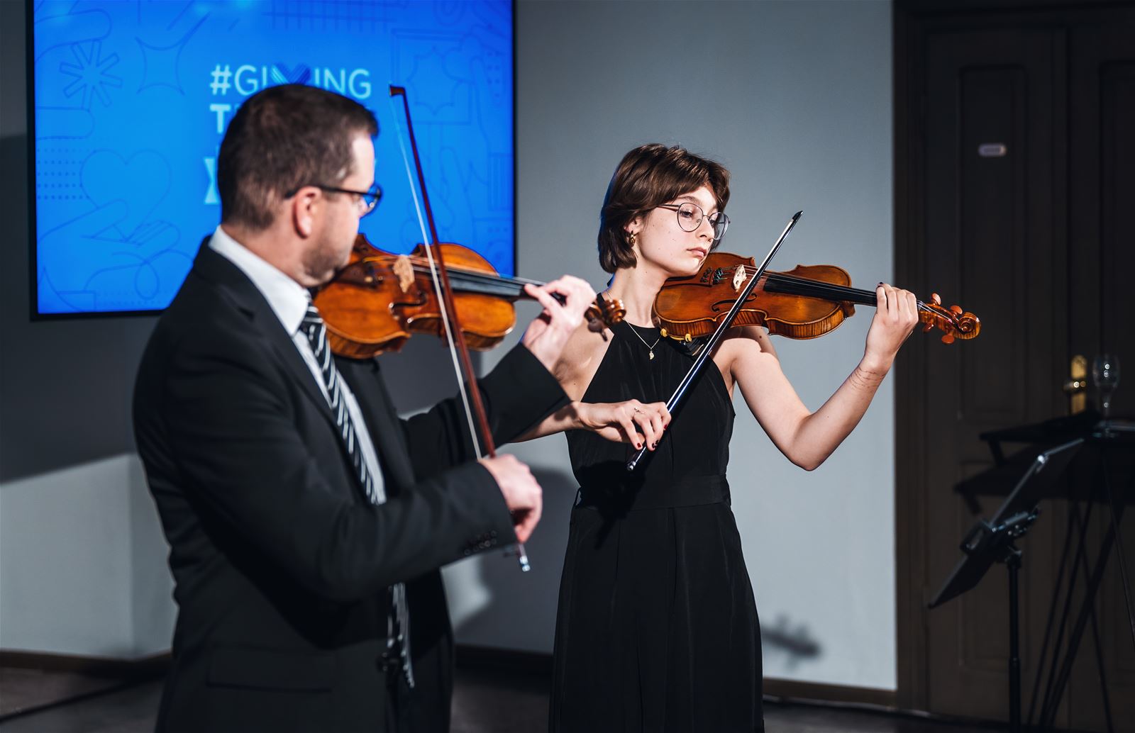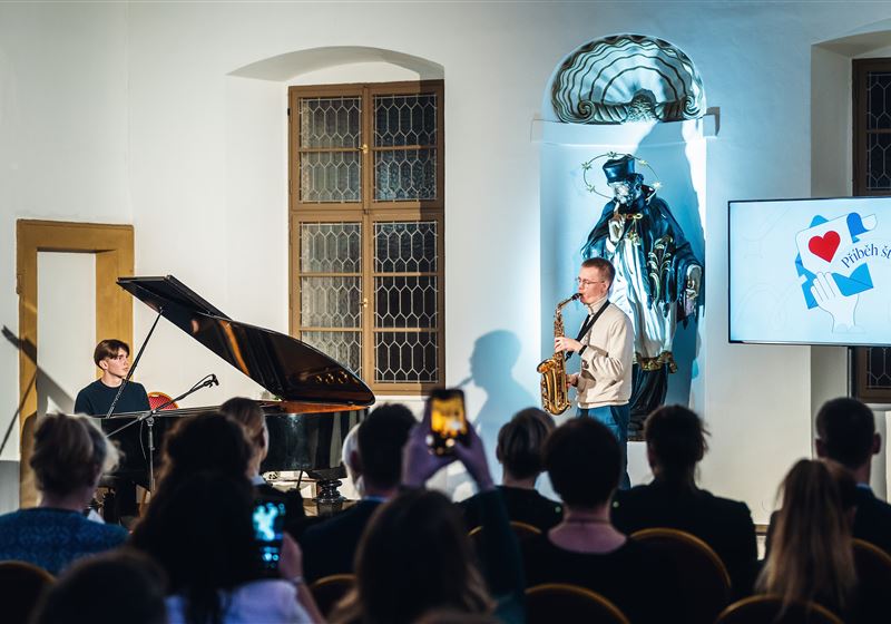 Radost jsme měli z hudebního příspěvku našich stipendistů Timofeye Goleva a Tadeáše Syrového, kteří pro každou z oceněných kategorií složili originální autorské znělky a slavnostní fanfáru. Náš mentor Jan Fišer spolu s Magdalenou Pawlicovou pak připravili působivou koncertní a virtuózní tečku za celým večerem. Mladí hudebníci pracují letos pod vedením mentorky Beaty Hlavenkové (Intermediální ateliér ZUŠ Biskupská).