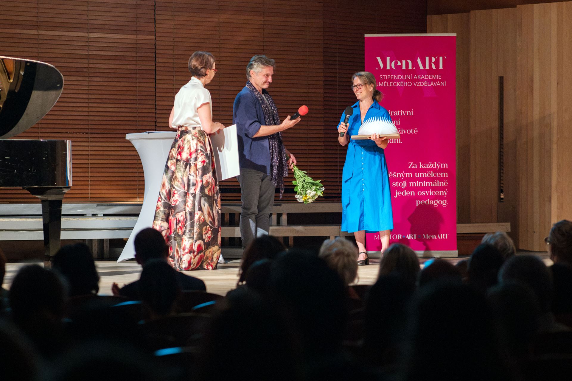 U příležitosti zahájení 8. ročníku Stipendijní akademie MenART v sobotu v Olomouci ocenila odborná komise pedagogy základních uměleckých škol, kteří svou dlouholetou a inspirativní prací významně ovlivňují životy mladých talentů. Cenu MenART pro výjimečného pedagoga ZUŠ 2025, ve formě symbolické světelné knihy v obalu od Studia Činčera a šeku v hodnotě 25 tisíc korun převzali klavíristka Taťána Vejvodová, taneční pedagožka Simona Mikešová a výtvarník Marek Bělohlávek.