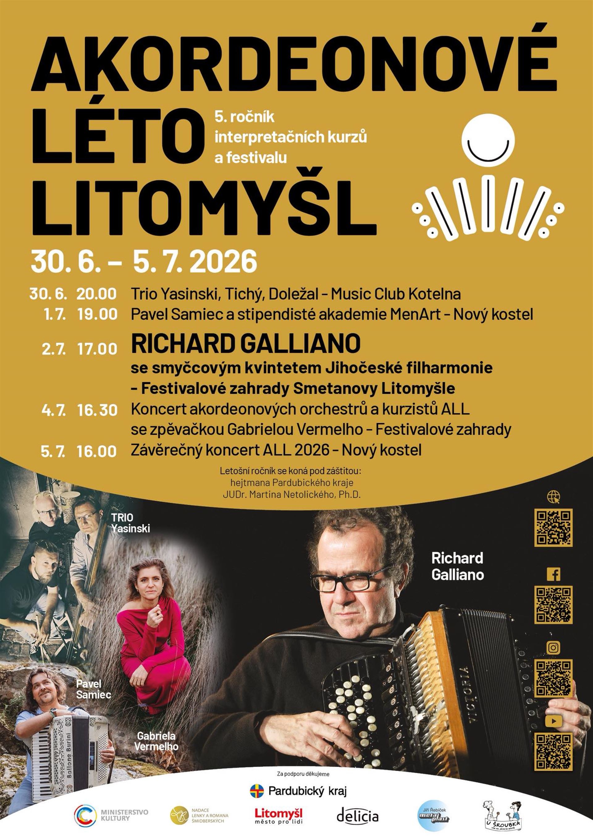 Koncert stipendistů akademie MenART s Pavlem Samiecem se uskuteční v rámci 5. ročníku festivalu a interpretačních kurzů Akordeonové léto v Litomyšli 30.6. – 5.7. Večer nabídne setkání mladých interpretů se zkušenými umělci a prostor pro společné hudební sdílení.