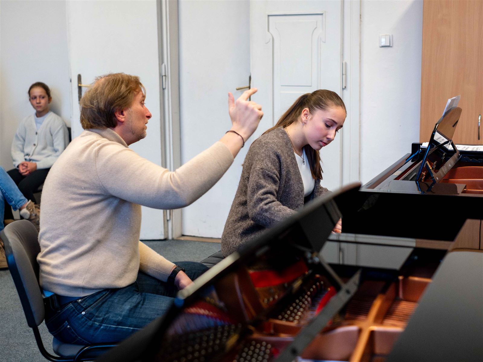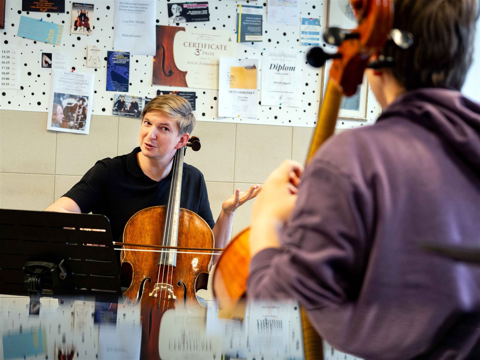 Společně i s pedagogy jsme celou sobotu ladili technické dovednosti, sdíleli si zkušenosti ohledně trémy před a při vystoupení, dodávali si kuráž, podporu a nové úhly pohledu či poslechu a hlavně – přátelsky si povídali prostřednictvím hudby.