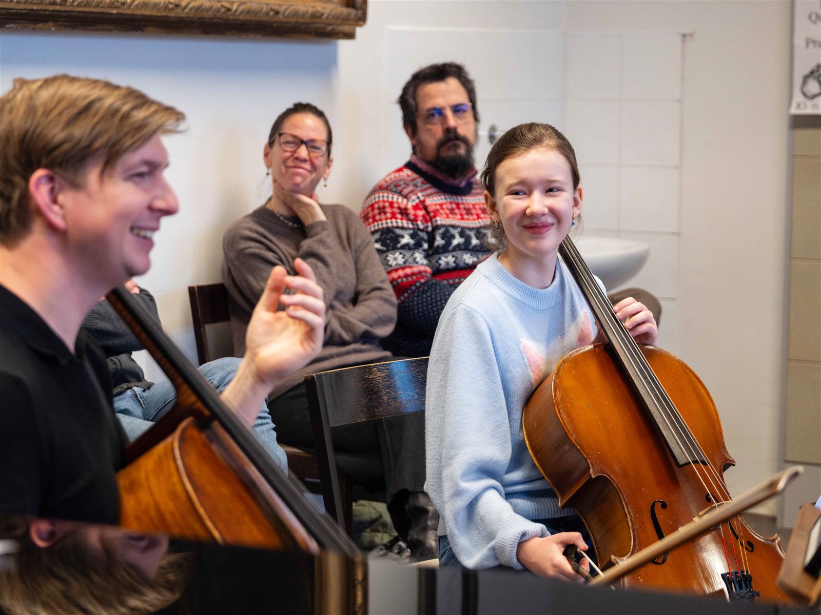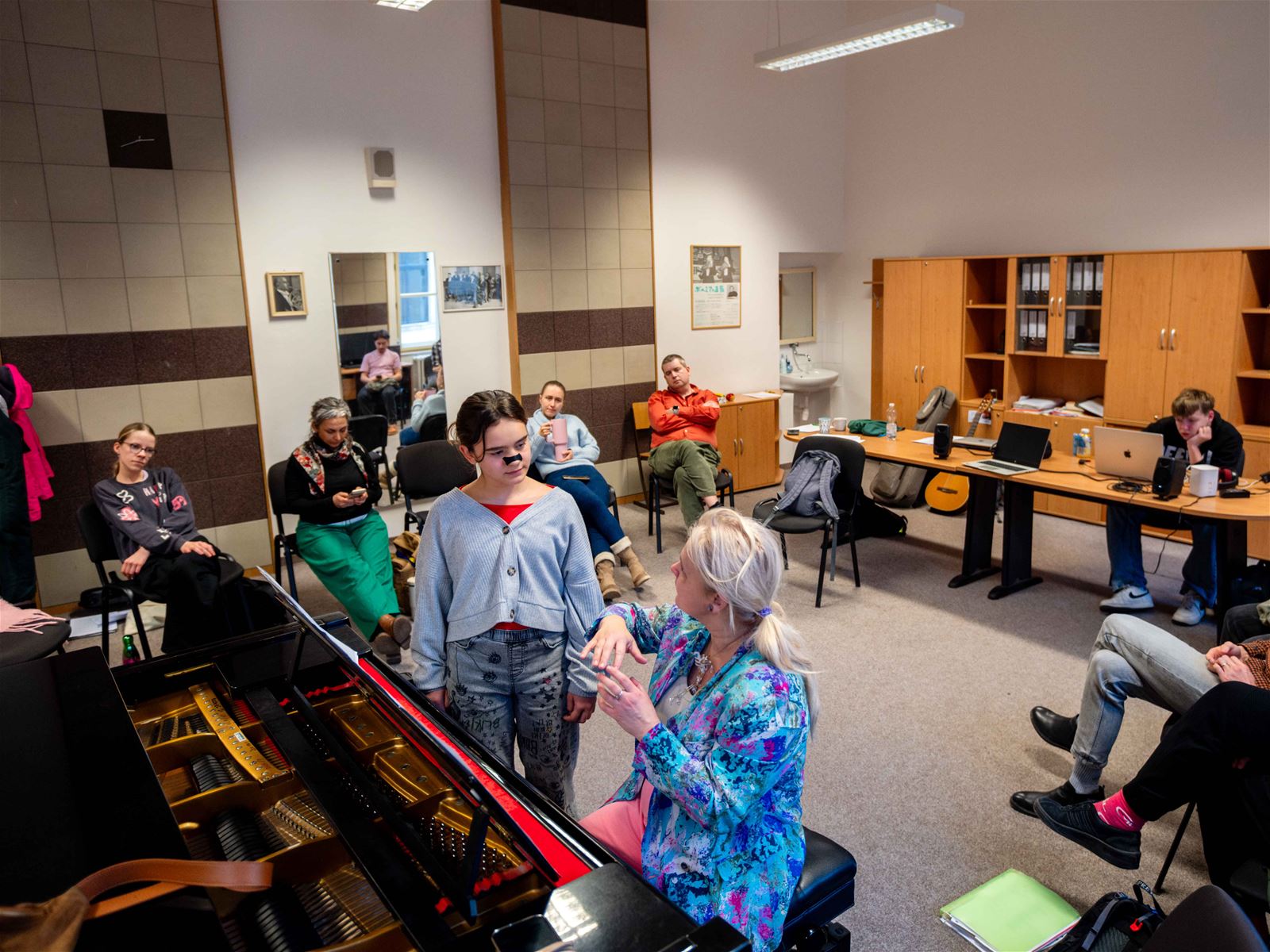 Společně i s pedagogy jsme celou sobotu ladili technické dovednosti, sdíleli si zkušenosti ohledně trémy před a při vystoupení, dodávali si kuráž, podporu a nové úhly pohledu či poslechu a hlavně – přátelsky si povídali prostřednictvím hudby.